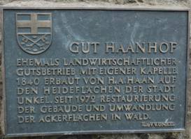|  | |  Bronzetafel des TuG e.V. Unkel mit einem kurzen Abriß der Haanhof Geschichte