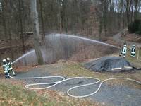 Regelmäßig halten die benachbarten Feuerwehren aus Bruchhausen und Unkel auf dem Wochenendplatz Übungen ab, damit im Ernstfall alles "wie am Schnürchen" klappt. Dieses Mal mußte der Löschteich seine Probe bestehen: