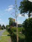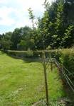 Im Frühjahr 2014 haben wir unseren Wochenendplatz einheitlich neu eingegrünt mit einer Baumart, die bis jetzt noch nicht auf unserem Gelände vertreten war: 20 Schwedische Mehlbeeren (Sorbus intermedia ´Brouwers`) säumen jetzt die Wege. Diese Baumart ist kleinwüchsig, robust und frosthart; sie bietet jedoch im Frühjahr mit ihren weißen Blütenständen und im Herbst mit einer gelb bis orange gefärbten Laubfärbung und ihren roten Früchten einen echten Blickfang.