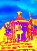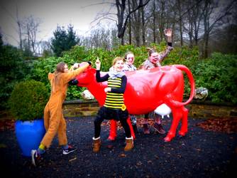 Känguruh, Leopard, Kuh und Biene tanzen durch die Kapelle und schrecken die rote Kuh im Park aus ihrem Winterschlaf: